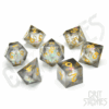 Set de 7 dés (d4, d6, d8, d10, d12, d20, et un d10 marqué en dizaines) en métal pour pimper vos parties de jeux de rôles.