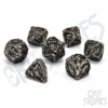 Set de 7 dés (d4, d6, d8, d10, d12, d20, et un d10 marqué en dizaines) en métal pour pimper vos parties de jeux de rôles.