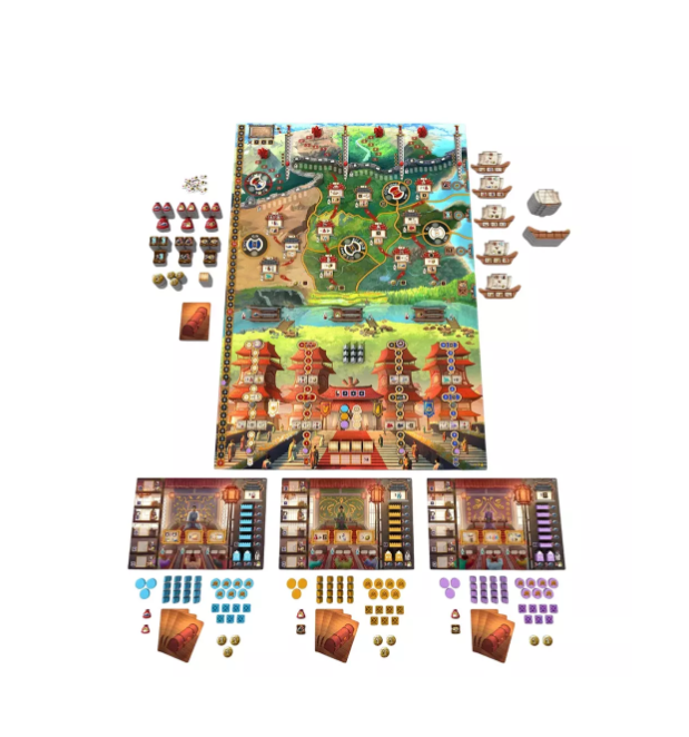 La partie se déroule en quatre manches, au cours desquelles vous nommez des gouverneurs dans les différentes régions, renforcez le pouvoir des familles royales rivales dans l’espoir de gagner leurs faveurs, et vendez des marchandises aux navires de commerce qui sillonnent les côtes chinoises afin de vous enrichir et de glaner quelques avantages. N’oubliez pas pour autant les guerriers nomades qui menacent constamment les frontières septentrionales des sept royaumes. Il vous faudra pour cela former des soldats, construire des murailles et ériger des tours afin de fragiliser ces envahisseurs et protéger les intérêts et le prestige de votre famille. À chaque manche, les Xiongnu sont toujours plus nombreux à se rassembler aux frontières des sept royaumes. Lorsqu’ils atteignent la frontière, une bataille s’engage et tous les joueurs doivent y prendre part.