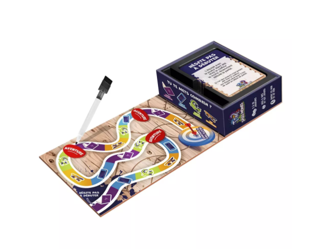 C’est drôle, accessible à tous les enfants (sages ou infernaux), et il y a de quoi faire : 162 cartes et 835 questions, avec la présence de cartes originales pour pimenter la partie. Et pour couronner le tout, d’astucieux stickers sont fournis afin de pouvoir jouer en famille sur un même plateau (TTMC 1 ou TTMC 2) !